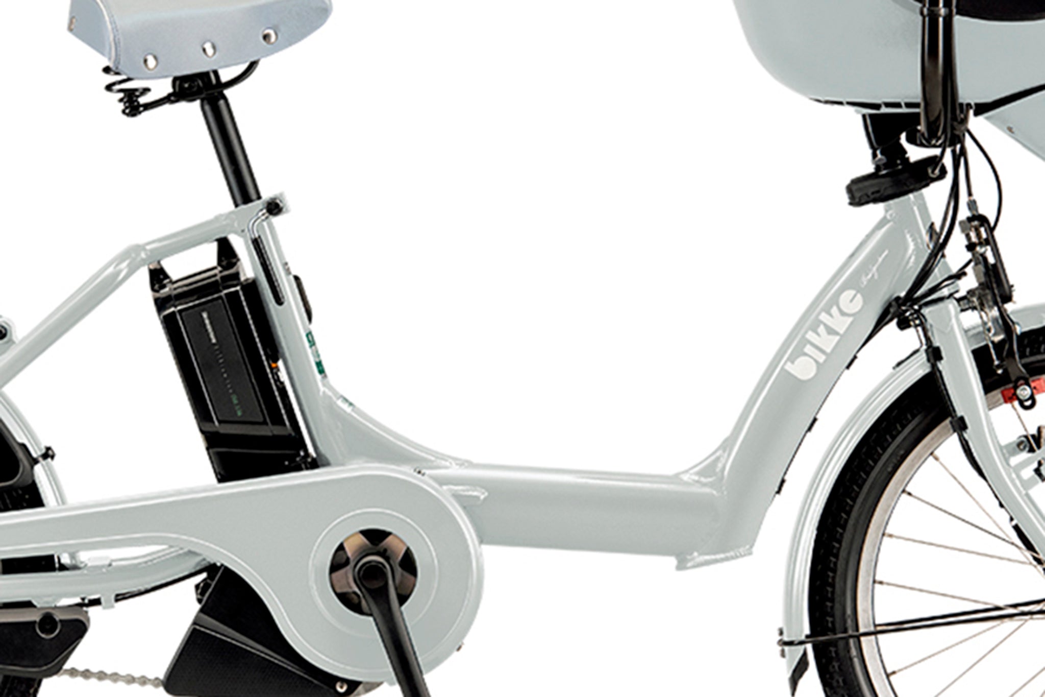 フロントチャイルドシートにお子さまを乗せても、走行時の安定性が高い前乗せタイプ。乗りやすさと安全性を追求したスマートシートを搭載。さらにbikkeシリーズNo.1のサドルの低さと低床フレームで小柄な方でも安心してお乗りいただけます。幅広のフロントチャイルドシートは買い物かごとしても活用できます。後ろのキャリアにはチャイルドシートはもちろん、リヤバスケットも取付できるので、お買い物にも便利な一台。